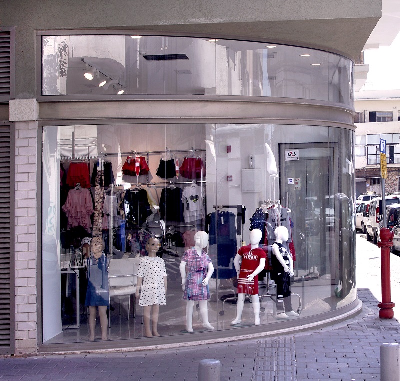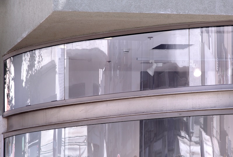 ויטרינה סובבת בניין בת"א - זכוכית מכופפת