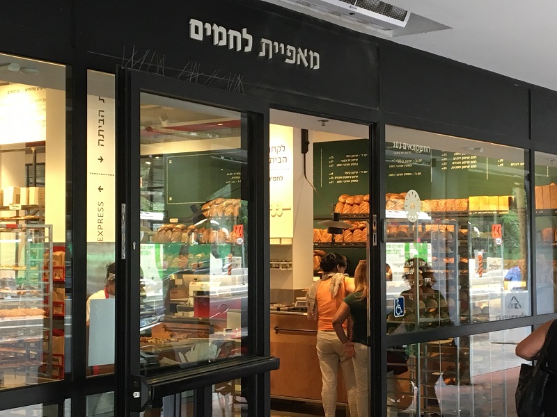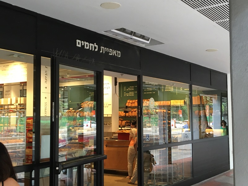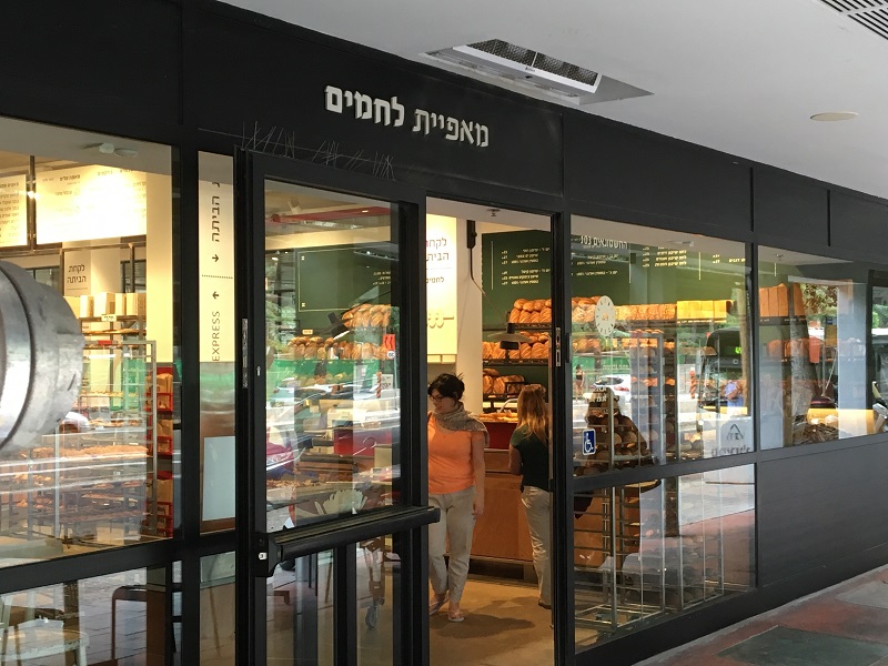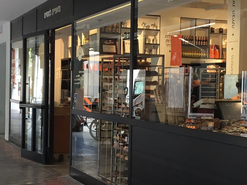 מאפיית לחמים ת"א דלת כניסה + ויטרינות, אלומיניום בצבע שחור.