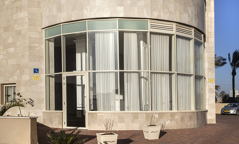 קיר מסך עם זכוכיות מעוגלות
