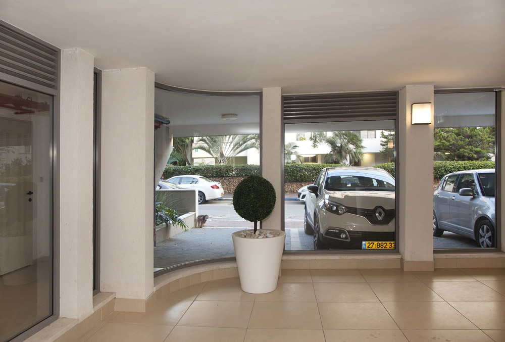 קיר מסך  - ויטרינה עם זכוכית פנורמית מכופפת