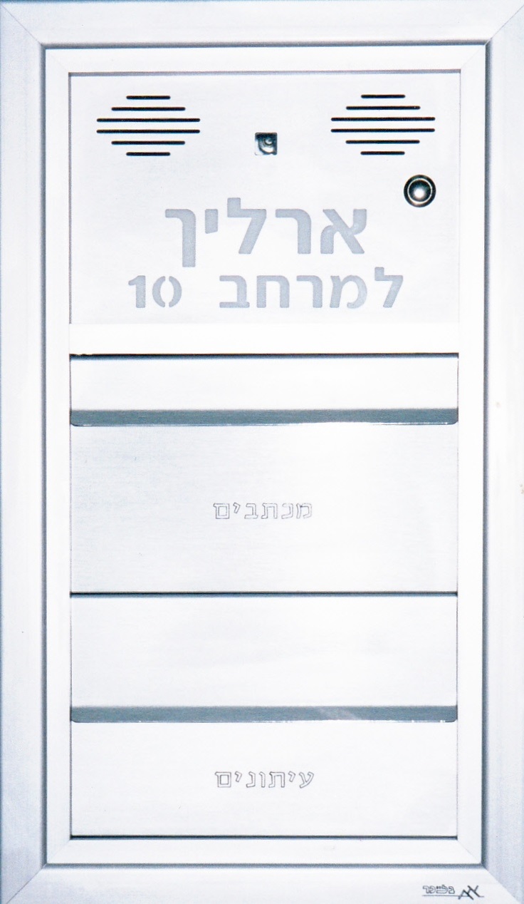 תיבת דואר דו צדדית עם שני תאים, הכנה לאינטרקום, חלון למצלמה, שם מואר. גוון ומידות לפי הזמנה