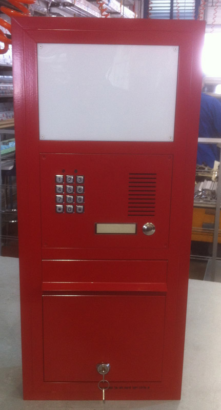 תיבת דואר חד צדדית משולבת עם אינטרקום לתוך הקיר.