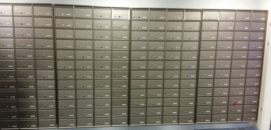 מערכת תאי דואר דו צדדית למוסדות או בניינים משותפים