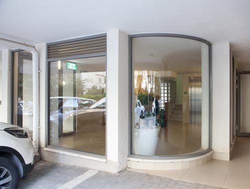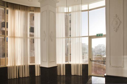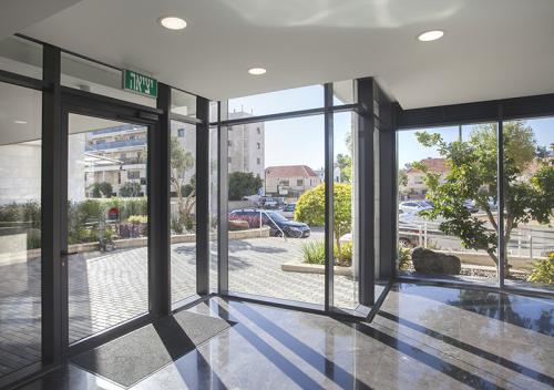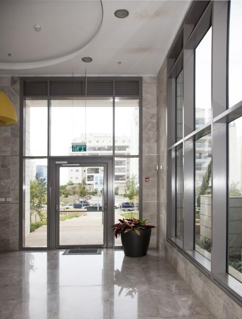 קירות מסך יכולים להוות תחליף לקיר קונבנציונלי בלובי הכניסה לבניין. קירות מסך מאפשרים פתיחה של החלל וכניסה של אור טבעי והם מעניקים תחושה של מרחב גם בחללים קטנים יחסית.